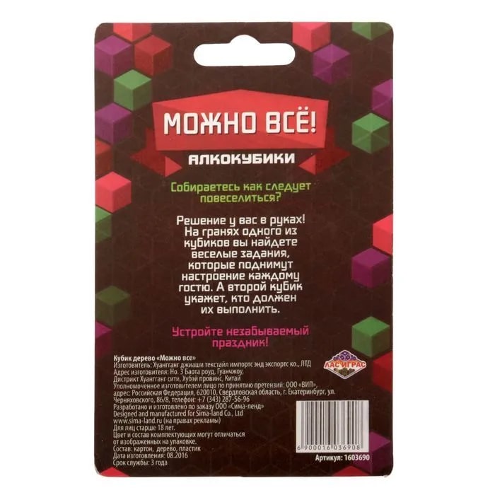 Купить кубик "можно все", алкокубики для принятия решений от 60 руб. с доставкой до пункта выдачи в Муравленко. Интернет магазин ДекаМаркет. Оплата при получении.